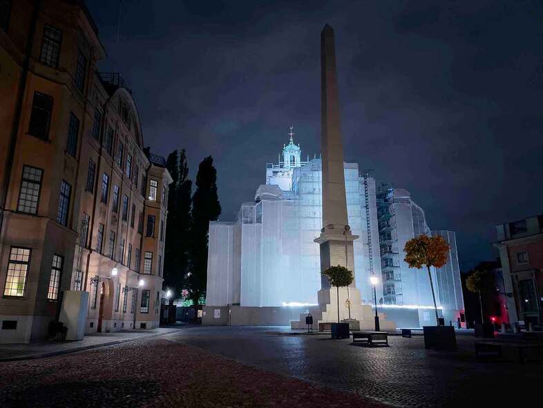 Storkyrkan ligger i Stockholms fasjonable Gamla Stan (gamlebyen) og er byens eldste kirke med en historie som går tilbake til 1306. For å gjenopprette Storkyrkan til det opprinnelige eksteriøret var det avgjørende å velge tikomstløsninger som gjorde det mulig å utføre restaureringsarbeidet så sømløst som mulig.