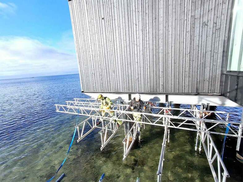 Et av Veberöds Ställningsmontages mest innovative prosjekter den siste tiden er det nye kaldbadhuset i Landskrona, et slående byggverk som ligger 300 meter utenfor kysten i Øresund. Det nye anlegget erstatter det tidligere kaldbadhuset som ble ødelagt av stormen Sven i 2013.