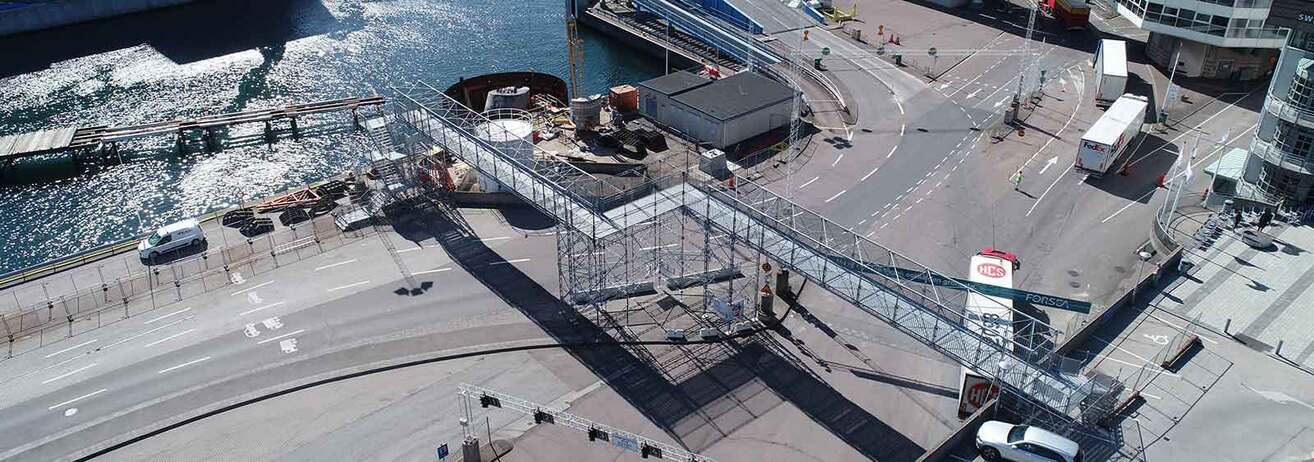 HBS muliggjør flere forskjellige monteringsmetoder avhengig av hva som passer best for den aktuelle konstruksjonen. HBS kan monteres på bakken og løftes på plass med kran, monteres på plass eller monteres ved hjelp av vår rull-ut metode, uten behov for kran. Det kan også monteres på et midlertidig stillas, og deretter demonteres stillaset.