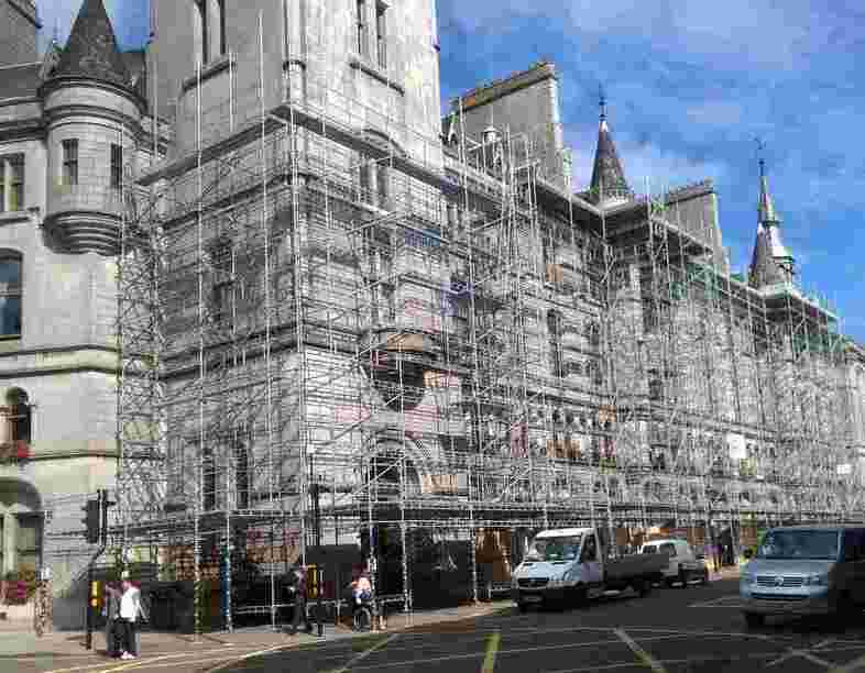 Et fasadestillas må være godt forankret i bygningen og ha et stabilt fundament på bakken for å gi maksimal sikkerhet.
