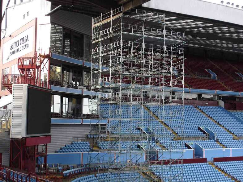 HAKI Iastetårn med rekkverk er en anvendelse av HAKIs modulære stillassystem med HAKI Universal-komponenter.